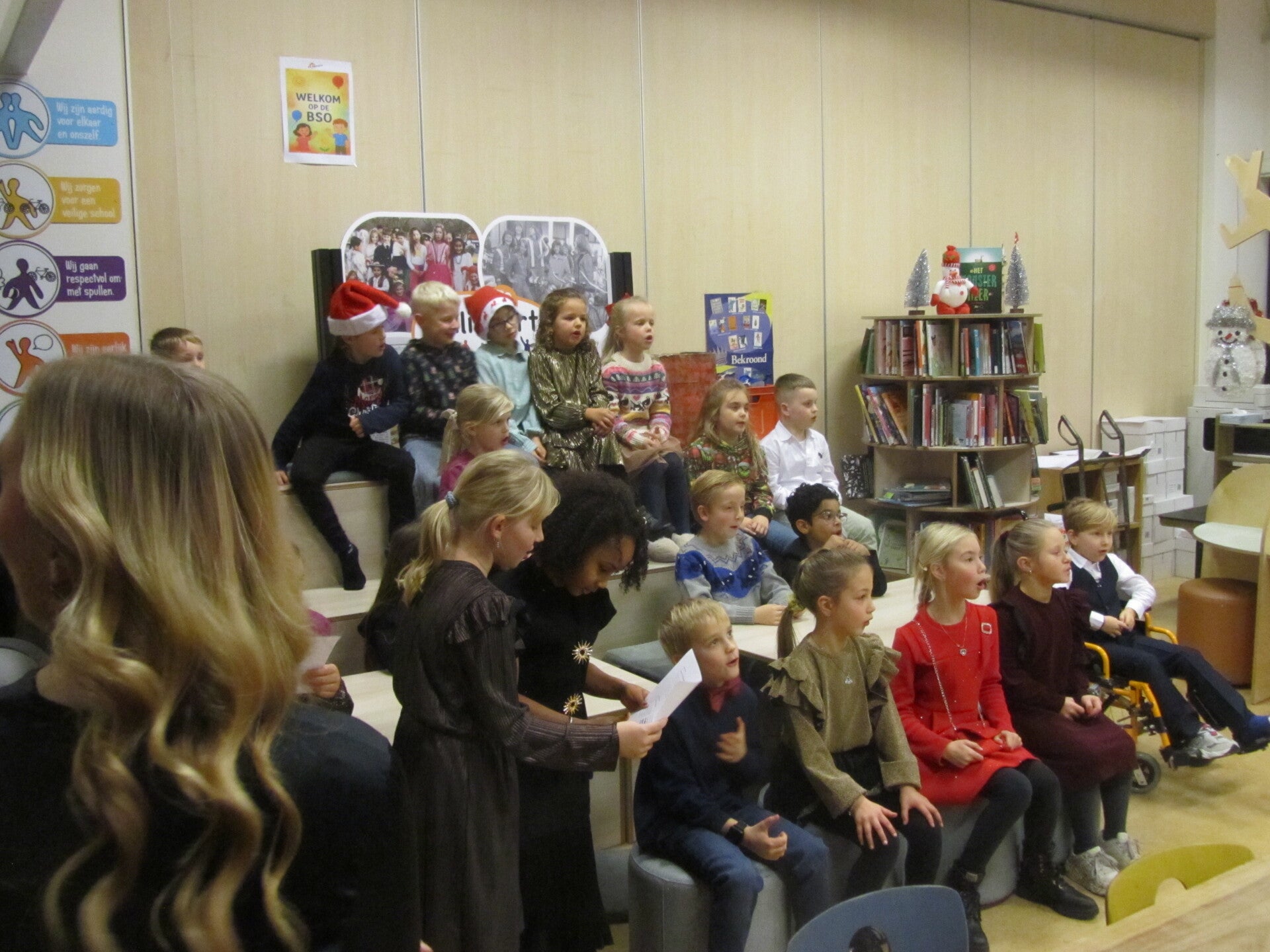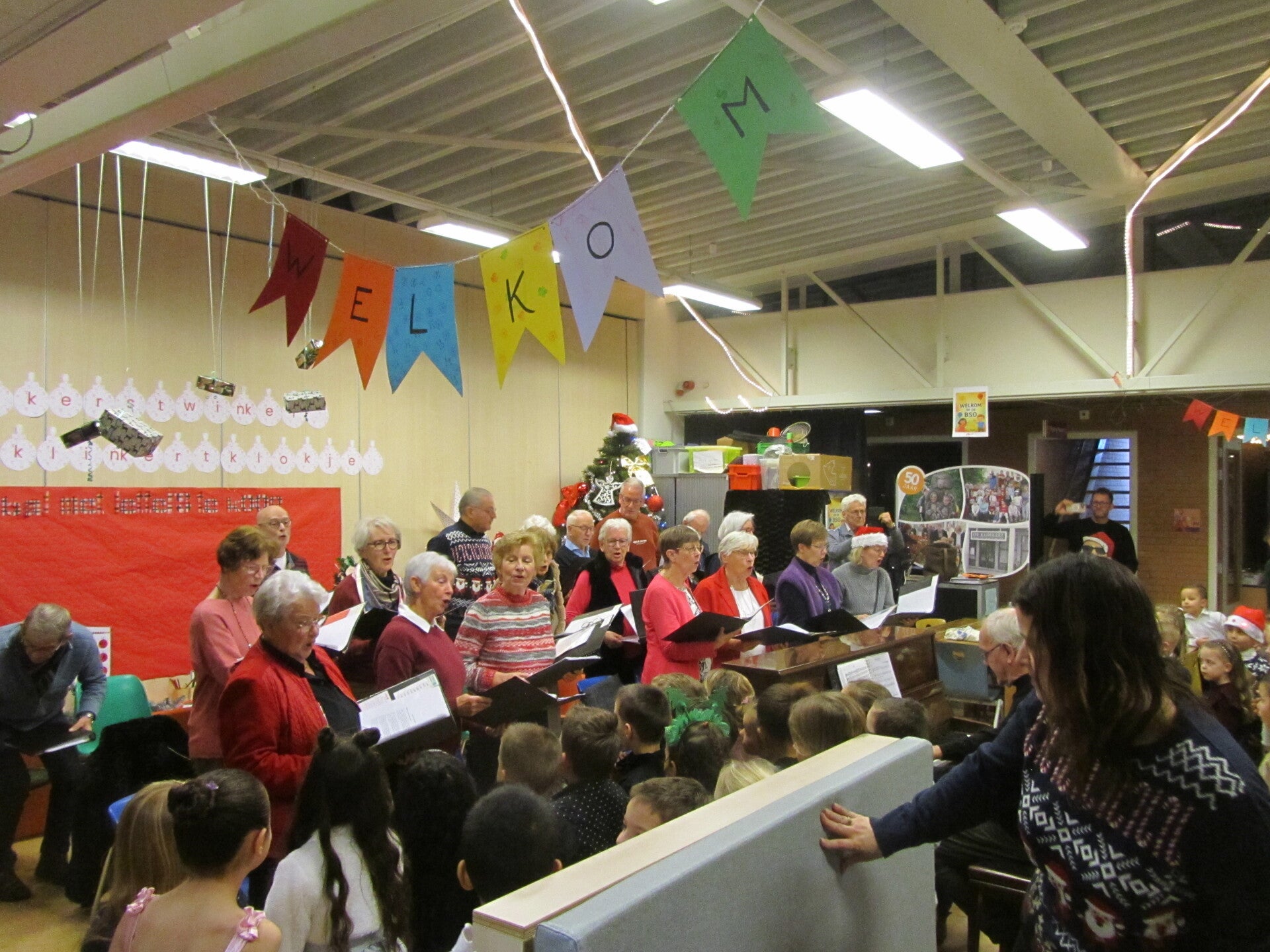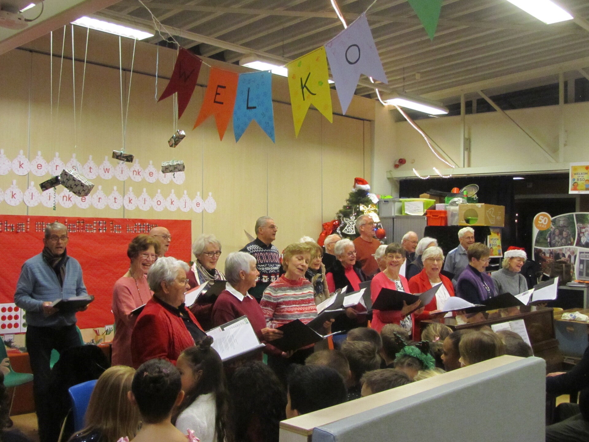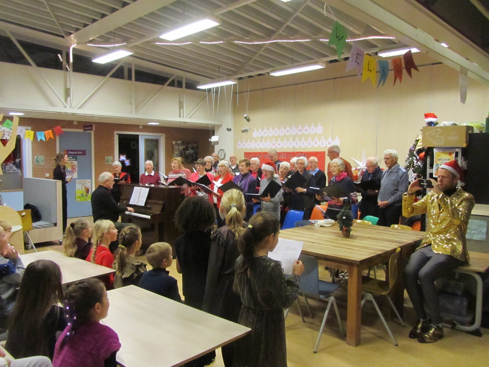 West-Brabants koor zingt samen met leerlingen kerstliederen op school